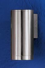 Obj.č. 84002 Venk.nást.svít. 'RIGA' nerez.ocel GU10, 2x50W Prům.65, H=200, A=93mm Doporučená cena: 839,- Kč vč.DPH vč.žárovek/-ky IP44